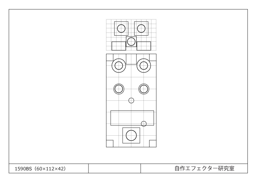 HAMMOND1590BS相当品(60-112-42mm)アルミケースへの穴あけ用型紙です。
