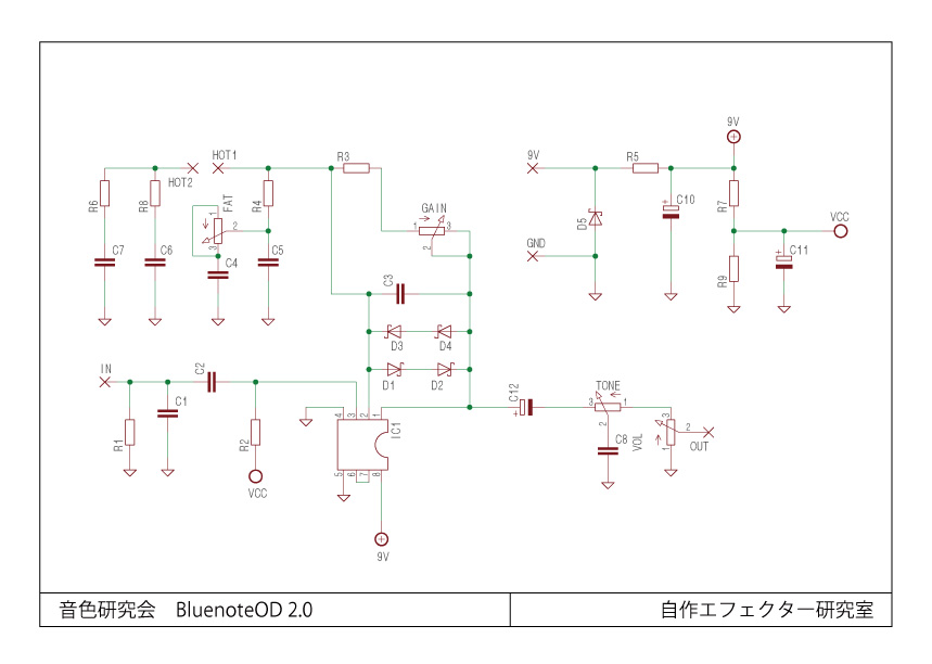 音色研究会「BluenoteOD風自作基板Ver2.0」の回路図です。
