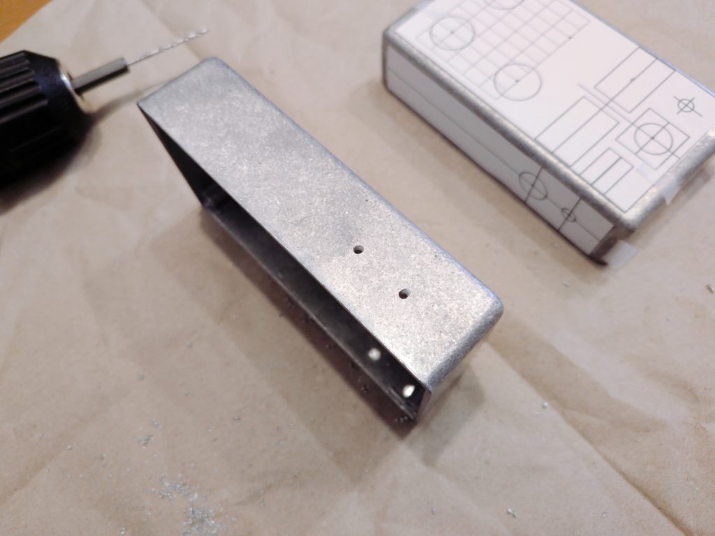 別にわざわざケースの図面とか穴位置とかまで作る必要はないのですが、アルミケースに穴をあける際に型紙があったほうが楽だし、同じケースを使うときに使いまわせるので型紙を作りました。