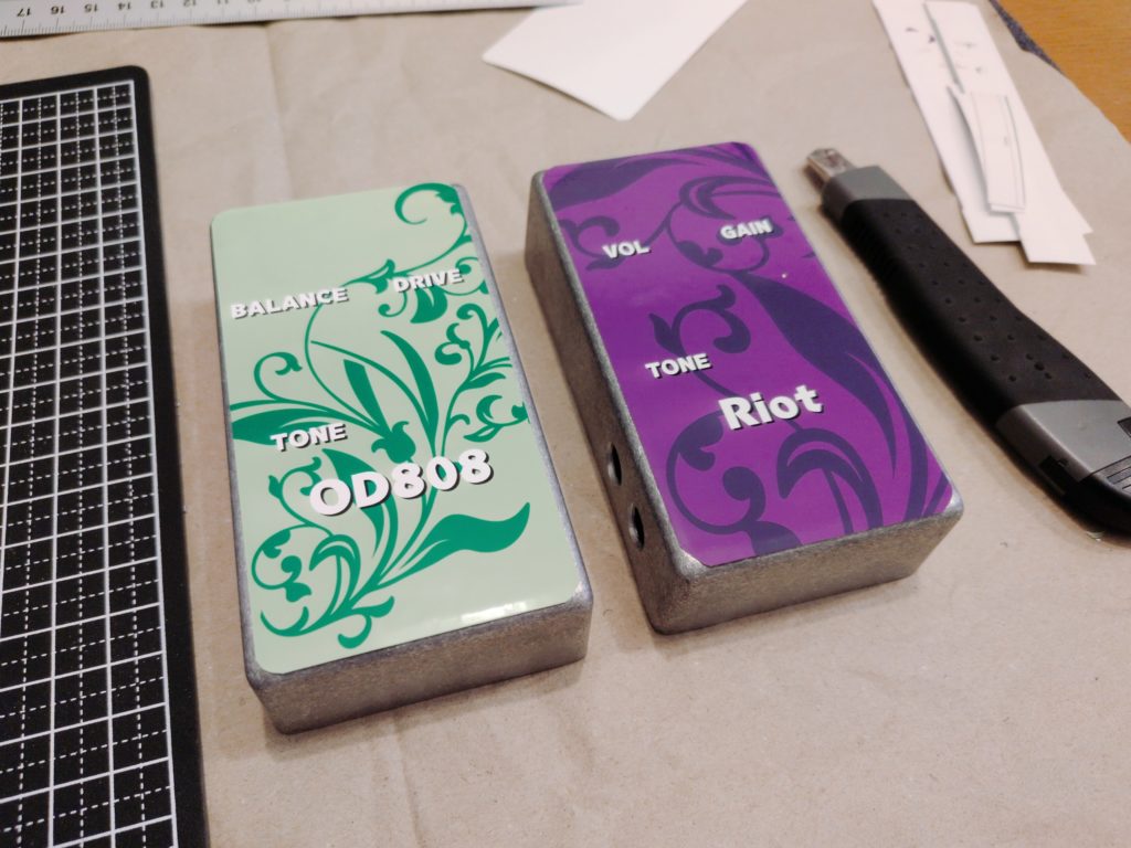 今回作る予定の自作エフェクターは「OD808」と「Riot」で、音色研究会の基板だとどちらも40mm×50mmです。